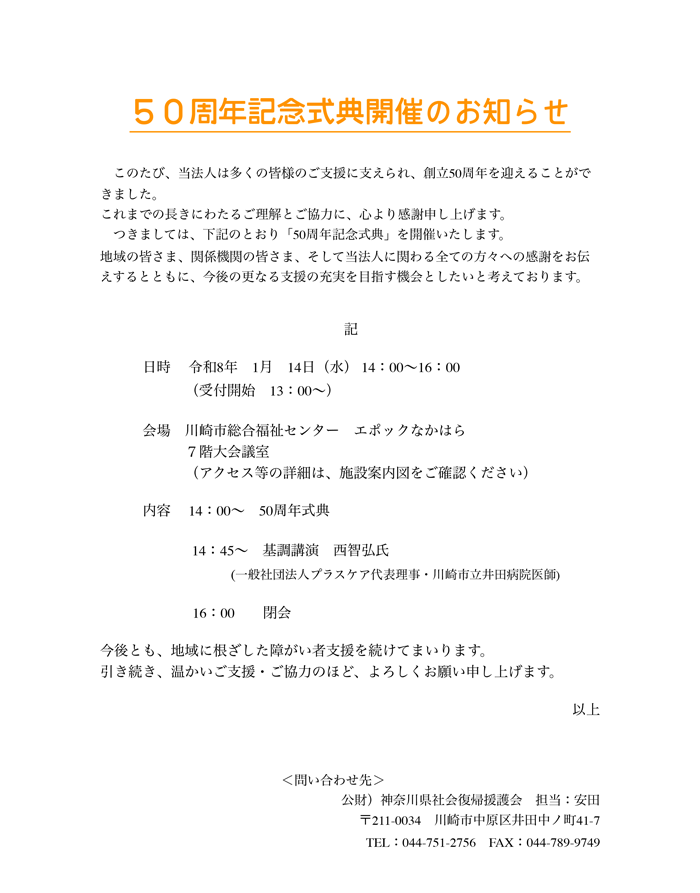 | new!! 2023.9.1 公益財団法人「社会復帰援護会」の沿革を更新させていただきました。 | |