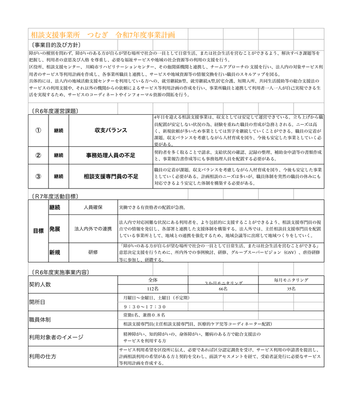 new!! 2025.12.1「相談支援事業所 つ む ぎ」の「令和7年度事業計画」掲載させて頂きました!! |